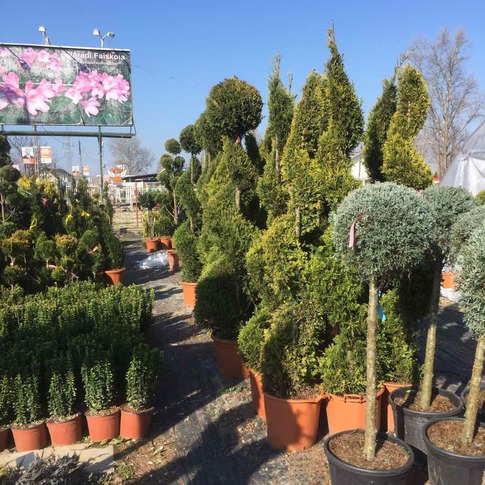 Termékkínálatunkban hazai és import örökzöldek, díszcserjék, díszfák, gyümölcsfák, szőlőoltványok, bogyós gyümölcsűek, évelő dísznövények, valamint mulcs, szarvasmarhatrágya, tőzeg, virágföld, termesztőedény és virágcserép található.